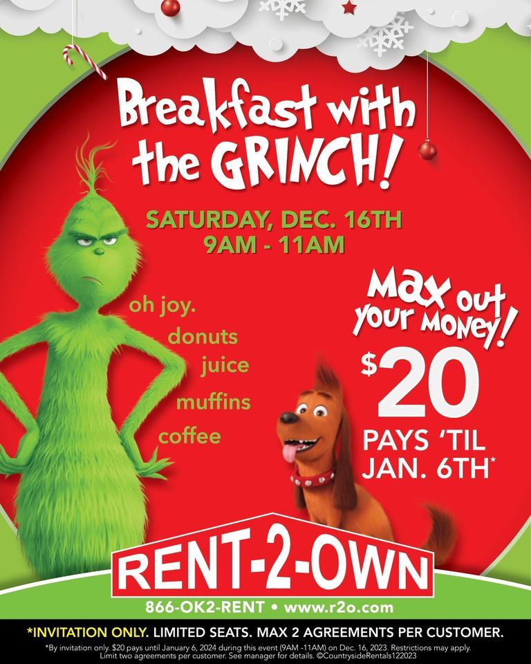 Source : www.eventbrite.comBreakfast with the Grinch, Rent 2 Own (Cambridge, OH), 16 December